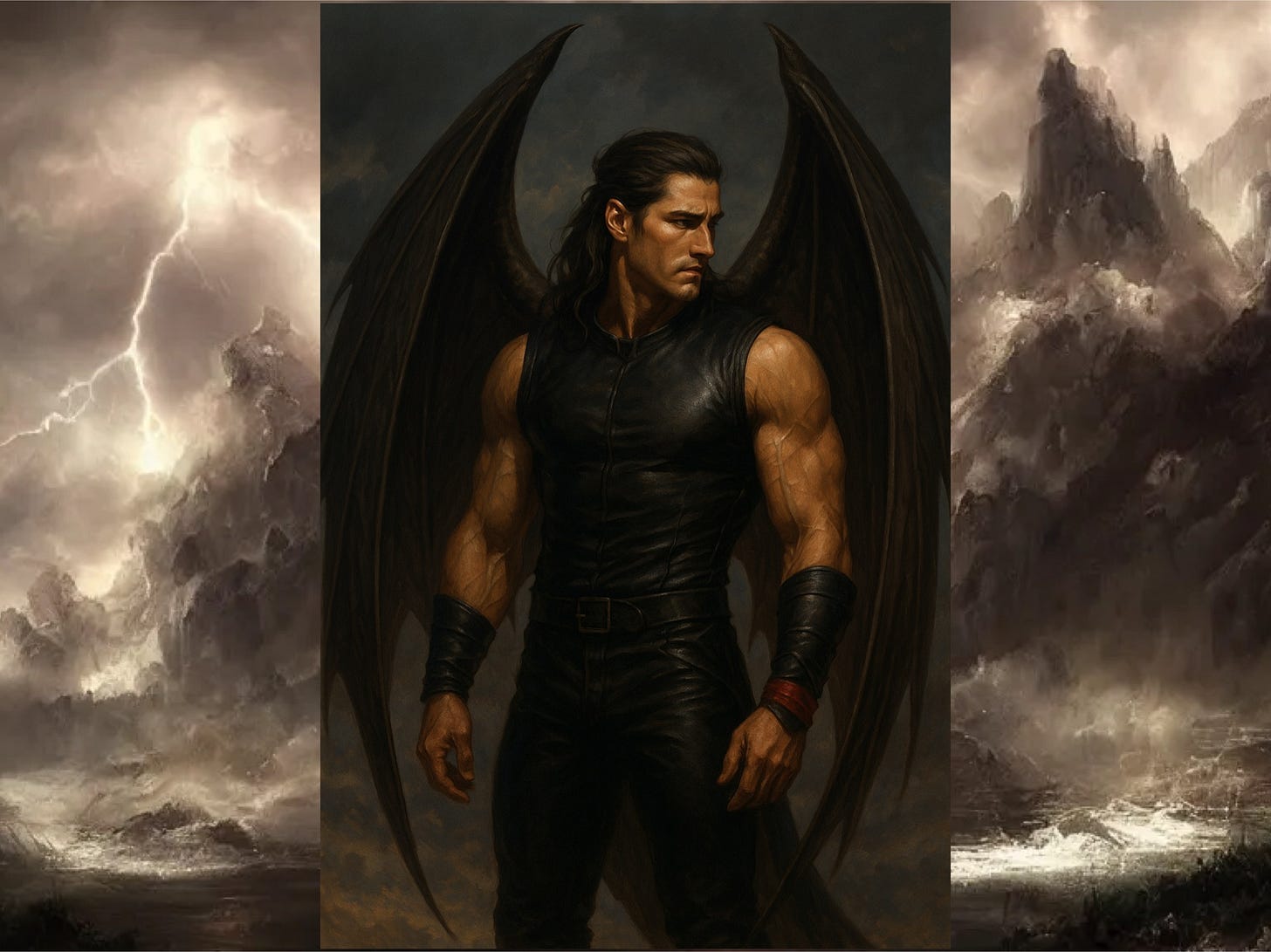 And then he’s there—half shadow, half miracle—the kind of man who shouldn’t exist in a mortal world. You already know how this goes. He has wings. And they’re massive.